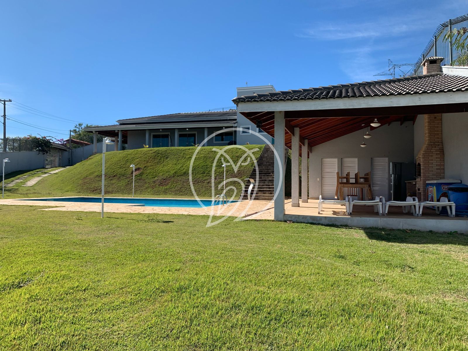 ChurrasqueiraCircuito de segurançaCozinha americanaCozinha caipiraEdículaEspaço GourmetForno à lenhaForro de madeiraJardimMezaninoPiscinaQuintalVista para a montanha